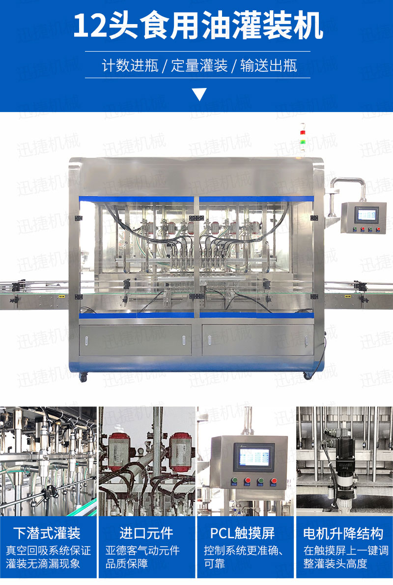 該系列玻璃瓶灌裝機(jī)采用容積式計(jì)量灌裝原理,適用于各種規(guī)(100ml-1000ml)的南瓜籽油、榛子油、牡丹籽油、芝麻油、核桃油、山茶油、亞麻籽油、棉籽油、橄欖油、大豆油、玉米油、菜籽油等食用油灌裝。設(shè)備采用伺服驅(qū)動活塞計(jì)量,保證了 1‰的灌裝精度,在保證灌裝精度的同時(shí),提高了 20%-35%灌裝速度,操作簡單,維護(hù)方便,節(jié)省人工成本,生產(chǎn)效率更高。
