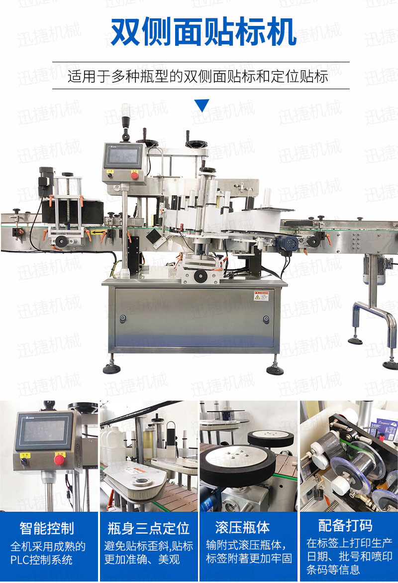 全機(jī)采用的技術(shù),微電腦-PLC-電子光纖傳感器控制系統(tǒng),使整機(jī)運(yùn)行穩(wěn)定、高速; 操作系統(tǒng)采用操作界面控制,操作簡便、實(shí)用、效率高,并有產(chǎn)量記數(shù)功能; 技術(shù)的速度快且穩(wěn)定; 適用范圍大,可用于各種尺寸的圓形瓶貼標(biāo); 輸附式滾壓瓶體,使標(biāo)簽附著更加牢固; 前后段可選連線使用。