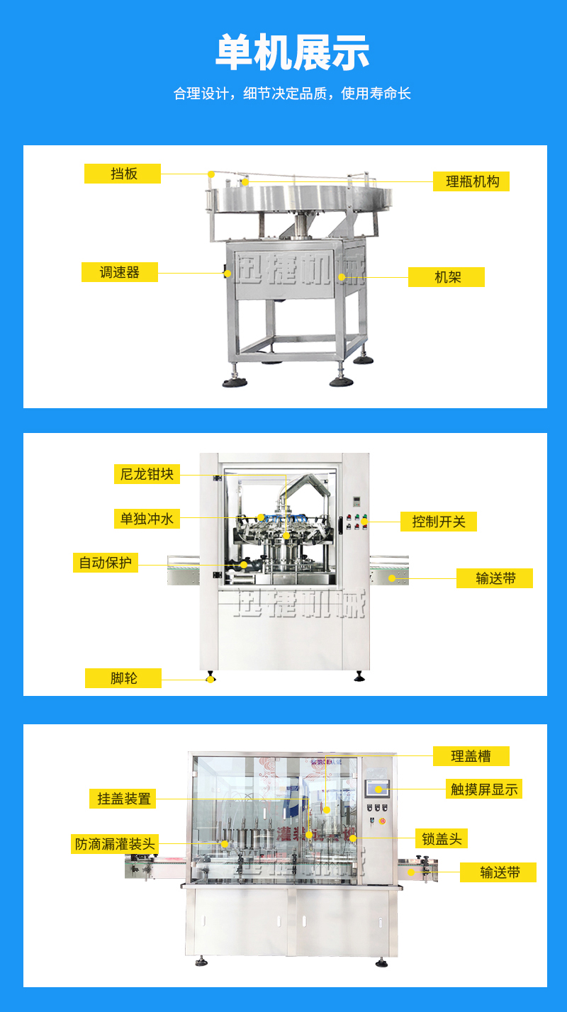 公司主要經(jīng)營兩大類產品:灌裝機和包裝機。其中灌裝機主要產品有:食用油灌裝機、液體灌裝機、膏體灌裝機、自動灌裝機、全自動灌裝機、辣椒醬灌裝機等;包裝機產品有:粉劑包裝機、顆粒包裝機、液體包裝機、自動包裝機、真空包裝機等。