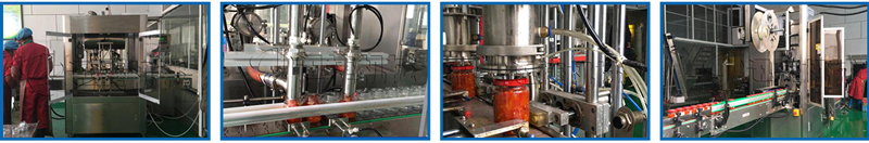 雙頭辣椒醬灌裝機1臺、四頭真空旋蓋機1臺、瓶口自動套膜機1臺、瓶口自動收縮機1臺、玻璃瓶貼標機1臺
